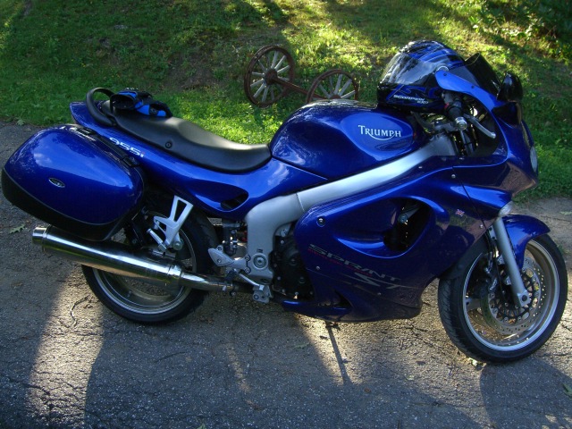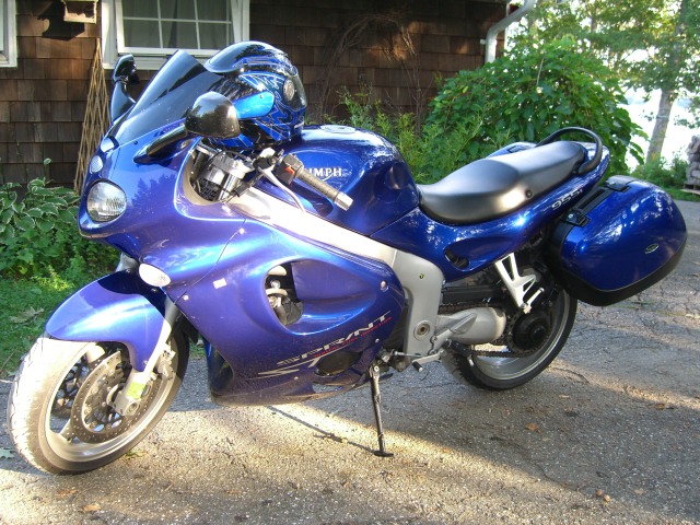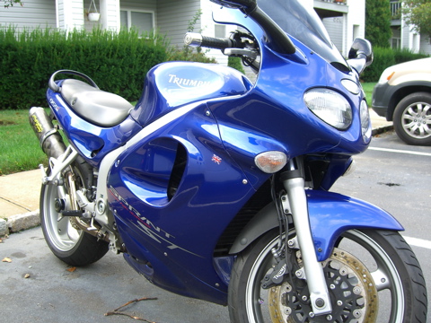 This VFR had been fitted with bar risers and a corbin seat before I bought it, as well as having the fender eliminated. The bar risers are comfortable, but the feel is less sporty than with stock clip ons. Corbin seat is great, but adds a few pounds to the bike over the stock seat. Personally I don't like taking the rear fender off bikes, but since the one on this bike is already gone, I kept it that way. This is the ABS model with linked braking. Both those features are probably great, but I personally like independent control of my brakes. This might turn out to be my favorite street bike. The V-Tech engine seems a bit complicated and even though I got over 50 mpg on the highway, it only got about 25 mpg putting around town. Compare this to the FZ1, which weighed similar but had a larger more powerful motor and got 37 mpg around town and 40 mpg highway. The VFR needs two things that every stock sport bike from Japan needs - a new set of mufflers and a LOUD horn. I can barely hear that squeeky little thing with my helmet on. I want a horn that a kid blasting his radio with the windows rolled up can hear. Better horns is the number one safety improvement Honda and the other Jap bikes could make. 2002 Triumph Sprint ST 955i This is a nice alternative to the Honda Interceptor. The Triumph Sprint is a lot faster than the Honda Interceptor and has a lot more torque. This one had a smaller front sprocket installed, which made wheelies happen easily. I toured in New England for 4 days on this bike and found it uncomfortable for me personally - made my right shoulder ache (partly from an old injury I had). At 6'3" I found my FZ1 a lot more comfortable on long rides. More Pictures of the Triumph here: Matching bags, Left side bag, Sprint front, Sprint high rise muffler installed 2006 Suzuki VStrom: Mods: ProTaper SE ATV Mid bars, Acerbis Touring hand guards. This is NOT a dirt bike. It is suitable for gravel or dirt roads but not single track or off road. I would recommend knobbier tires for any extended dirt / gravel road riding. The V-Strom was honestly my least favorite bike to ride - under powered, over-weight, not super comfortable. But I did like standing up on the pegs - the handlebar position makes it very comfortable to stand up - but not to ride sitting down - too reachy. The V-Strom was a nice idea by Suzuki, but overall the design is poor. I especially dislike the exposed oil cooler - which could easily be damaged by a rock or gravel, even when street riding. I also did not like the way the plastic fairing was put together. By comparison the BMW F-650 is a much better ride for the same cc. Of course the BMW is a single piston bike, making it lighter and torquier compared to the 2-piston V-Strom 2002 Yamaha FZ1 The 2002 FZ1 was my first 'street bike'. It had a lot of power for a new rider, which always tempted me to go too fast on the straightaways, long before I was any good at all in the corners. I replaced the factory horns on both these FZ1 bikes. I was able to find a horn at the auto parts store that screwed into the factory mount by coincidence. I took the old horn and mounted it to my off road dirt bike (makes for a good cheering noise when your buddy biffs on his bike!) 2004 Yamaha FZ1 Fazer: I owned the 2002 Fazer, and the 2004 FZ1 at the same time. The new one has the Yamaha carbon fiber exhaust. We raced the two bikes and the exhaust definitely made a huge difference - several bike lengths in the quarter mile and also from roll ons in every gear. The 2004 also has the lower handle bar mount, which I highly recommend to everyone. FZ1s are great bikes, and I highly recommend them. Very comfortable for carrying a passenger, especially compared to the R1. Also the upright riding position makes riding in traffic safer. "If just 10% of the 1.5 trillion annual car miles were traveled by motorcycle, America would save over 4.1 billion gallons of fuel - enough to power every freight train in the nation for a year, with enough left over to send over 100,000 tractor-trailers around the world." Dirt Bikes:I've owned the DR650 (1997), the DR250S (1990), the old DR350 (1996) and the DRZ400E (2002). I took the 650 everywhere my buddies with real dirt bikes went. The biggest problem I had was the weight. I got bogged down in the cinders. I also got tired of the weight when I had to pick it up. Ground clearance also was an issue on serious single track. Unless you plan to do a lot of highway miles, I would recommend the DRZ400 S model for a true dual sport purpose. However I chose the E model (the off road version) and modified it for street legal use. I've given my Suzukis some serious abuse, and they just keep going. Though they never go as fast as my friends KTM 520's. The best mileage I've ever gotten was out of my 1996 DR350, I got 65 mpg in the city and 81 mpg on the highway, plus had a blast off road. If you ever come across one of these - buy it! My 2002 DRZ 400 E It has engine guards, a skid plate, bark busters, seal savers, new graphics and a new seat cover. I modified the tail light to become a stop light as well. Stop light mod: add a banjo bolt (suzuki's require a special size) to the front brake reservoir and add a resistor in line. The resistor lowers the power to the L.E.Ds, making them dimmer. When I squeeze the front brake, the banjo bolt supplies full power to the LED's making them brighter. The install is really easy. The Suzuki is the same motorcycle as the Kawasaki 400. Both bikes are a little slower and a little heavier than the Yamaha WR450 and the Honda CRF450, but they are also cheaper and are built like tanks. While it's not fast, it climbs hills like a tractor! Recently I changed out the factory exhaust for a FMF pipe - huge difference - much faster, much lighter, and much louder - but bearable. I didn't re-jet since I live at 7000 feet, which was causing the bike to run too rich anyway. The DRZ400 tends to leak at the water pump - either check the antifreeze lev